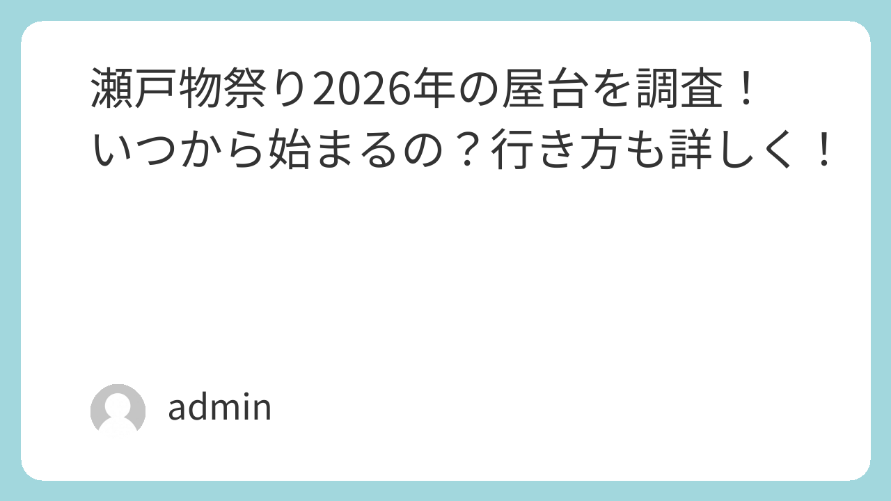 瀬戸物祭りは、多くの屋台グルメや陶器市をはじめ、歴史や文化に触れられる貴重なイベントです。早めの準備をしっかり行い、瀬戸市が誇るこのお祭りを思う存分楽しみましょう!
